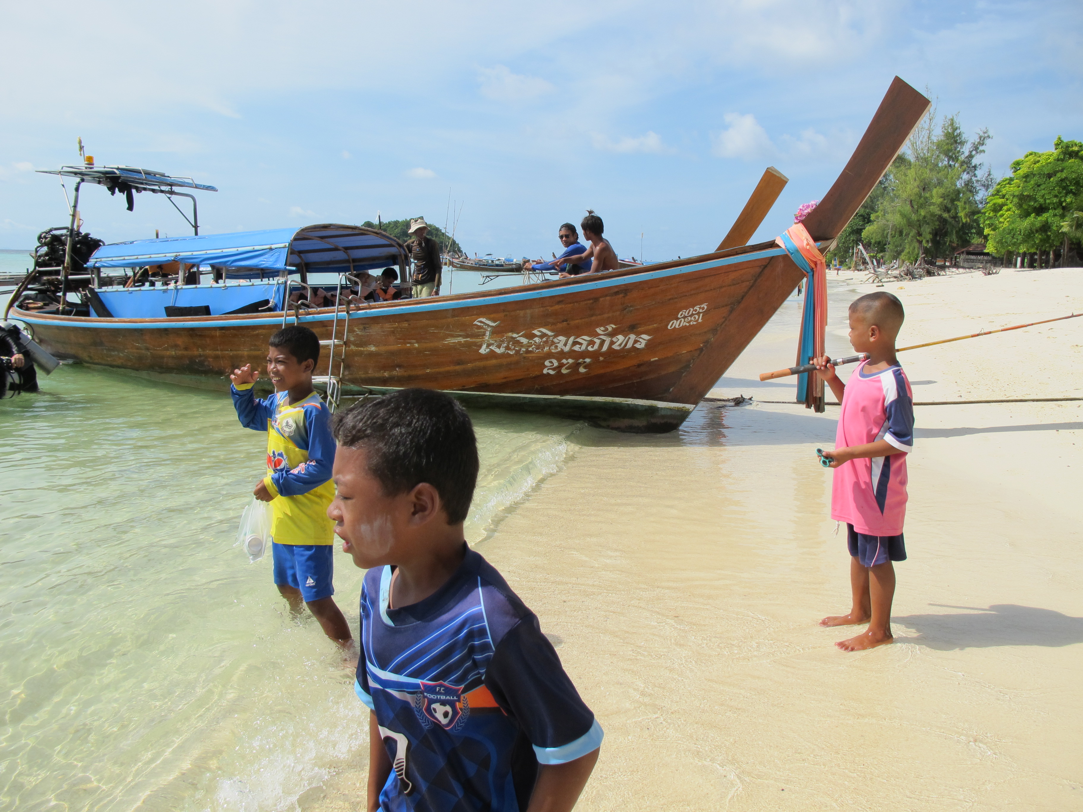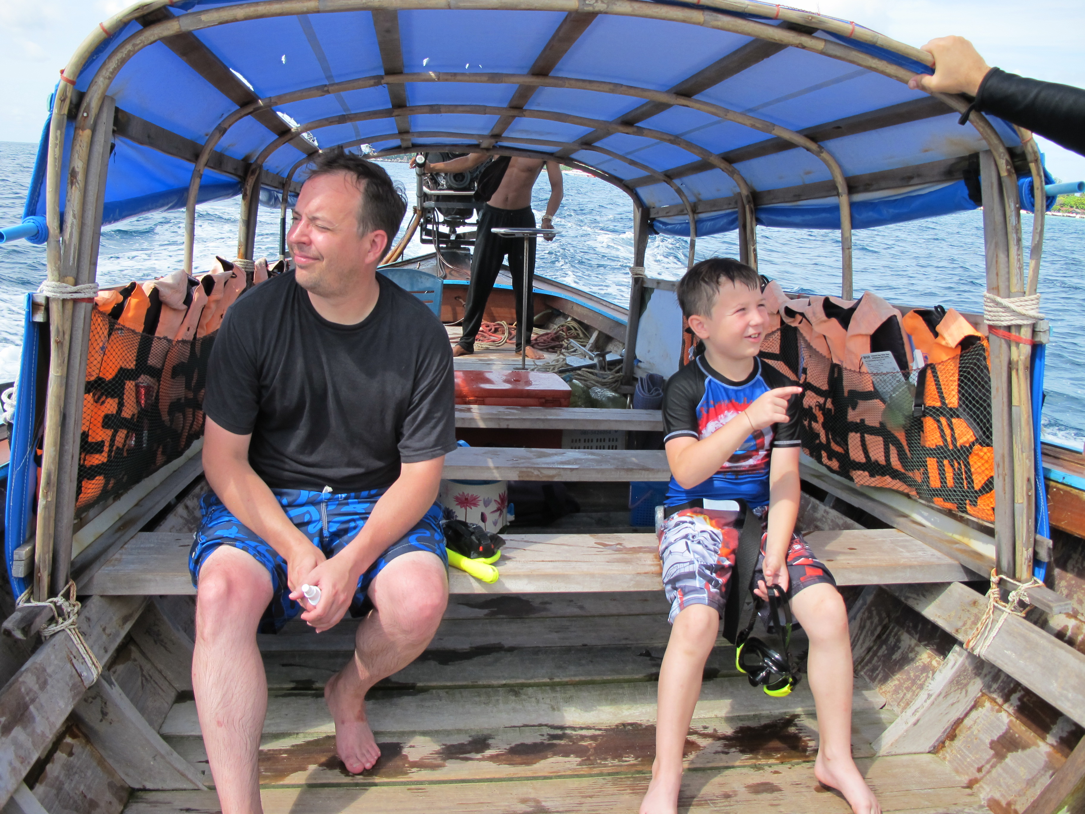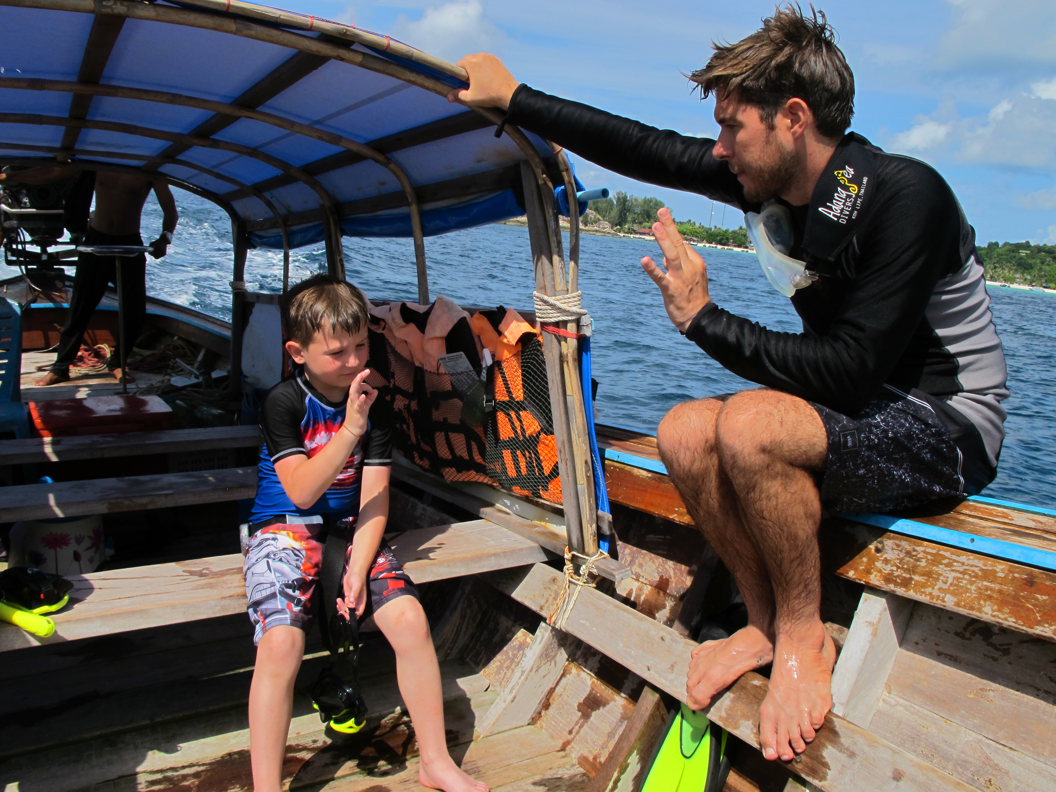 This dive spot was at the island next to ours and while the boys worked on their water adventures I relaxed on the boat. In the beginning they were alone on this particular reef, about 10 minutes in a huge boatload of tourists snorkeling came to the same spot.